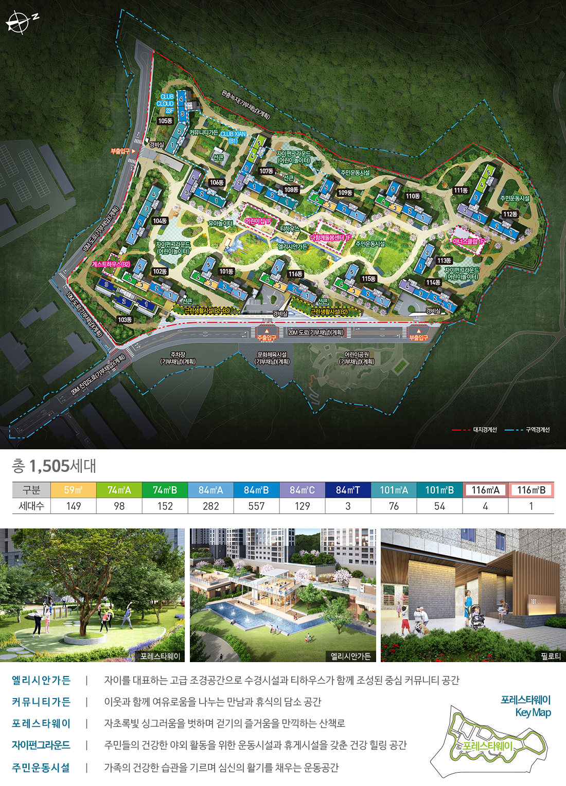 위치는 충북 음성군 금왕읍 무극리 504-5번지 일원. 지구단위계획구역 내 대지면적 74,778㎡, 연면적 243,994.2㎡로 계획됐고 용적률 214.7%, 건폐율 15.6%의 여유로운 수치가 눈에 띕니다. 지하 3층~지상 27층, 16개 동, 총 1,505세대 구성에 주차 2,127대(세대당 약 1.4대)를 확보해 일상 편의의 기본기를 단단히 다졌습니다. 시공은 1군 GS건설이 맡아 브랜드 안정감까지 더한 음성 자이 센트럴시티 입니다.