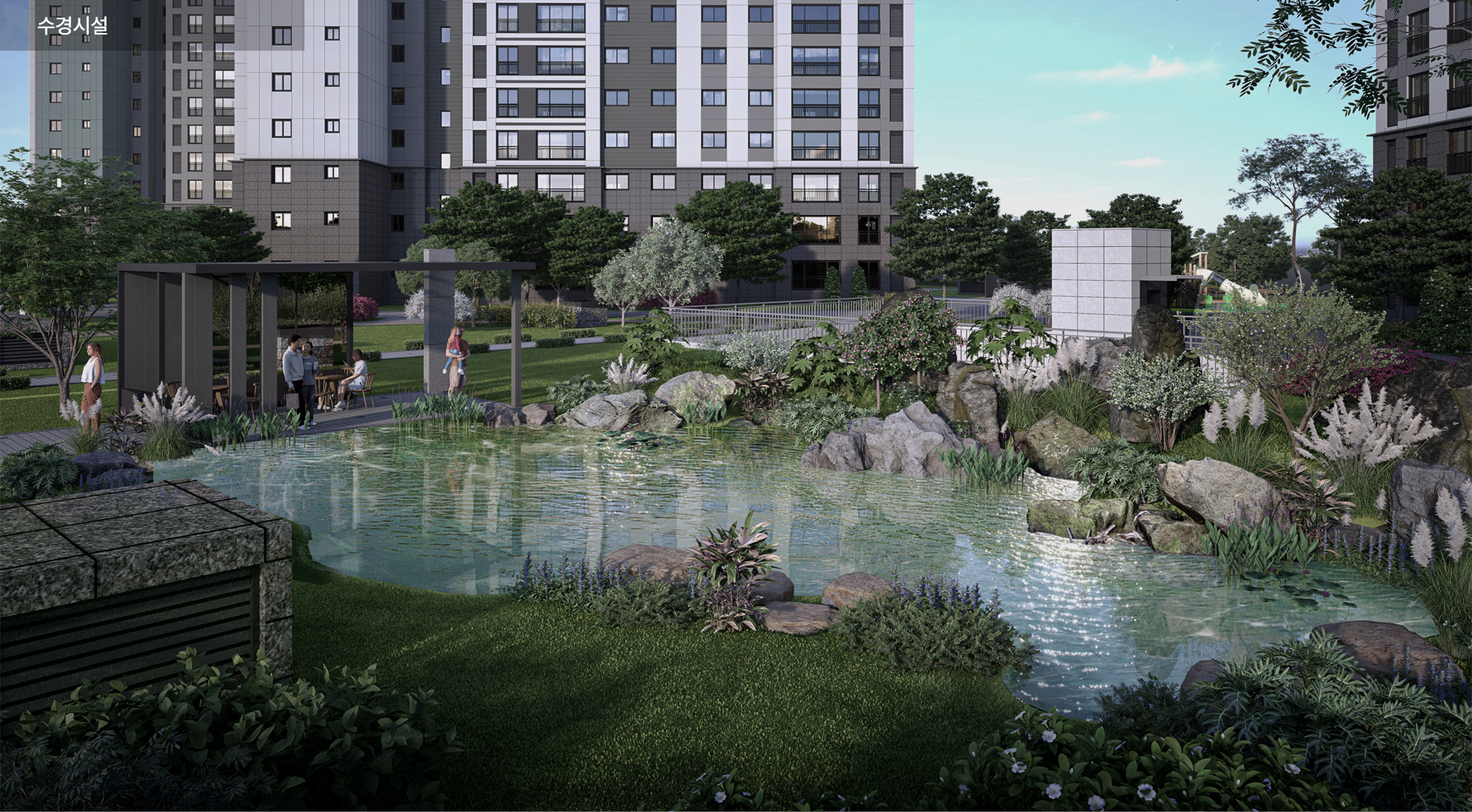 피트니스·GX·실내골프 등 액티브한 시설과 개인독서실·스터디룸·카페·게스트하우스를 아우르는 구성이 예고돼 있습니다. 낮은 건폐율을 활용해 잔디마당, 수경시설, 테마놀이터를 촘촘히 배치하고 지상 차량 동선을 최소화해 보행 안전과 휴식의 밀도를 높였습니다. 일괄제어, 원패스 출입, 공기질 관리 등 스마트 사양도 일상 편의에 집중한 구성이어야 합니다.