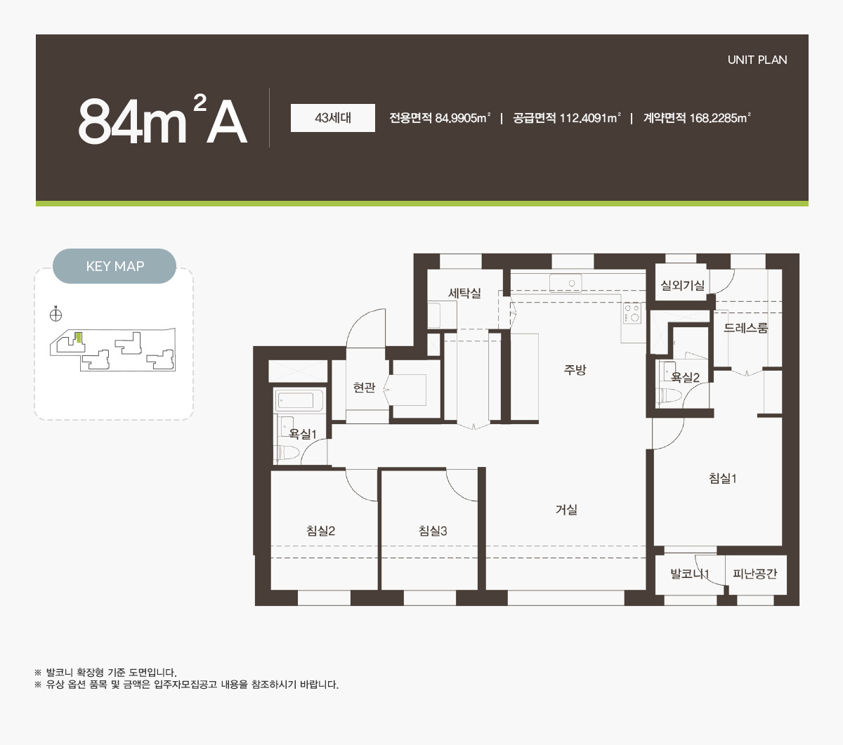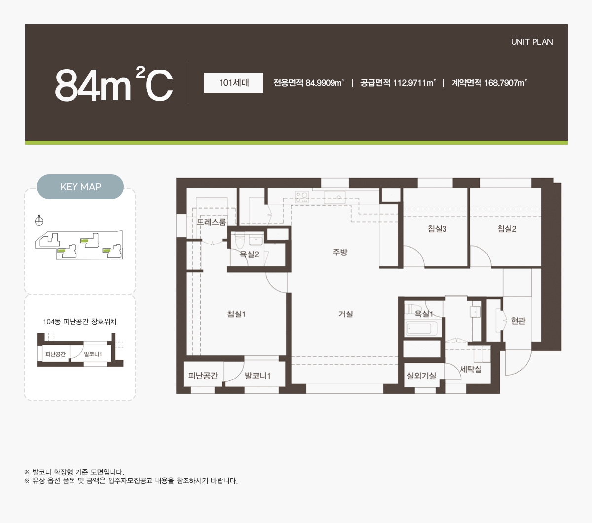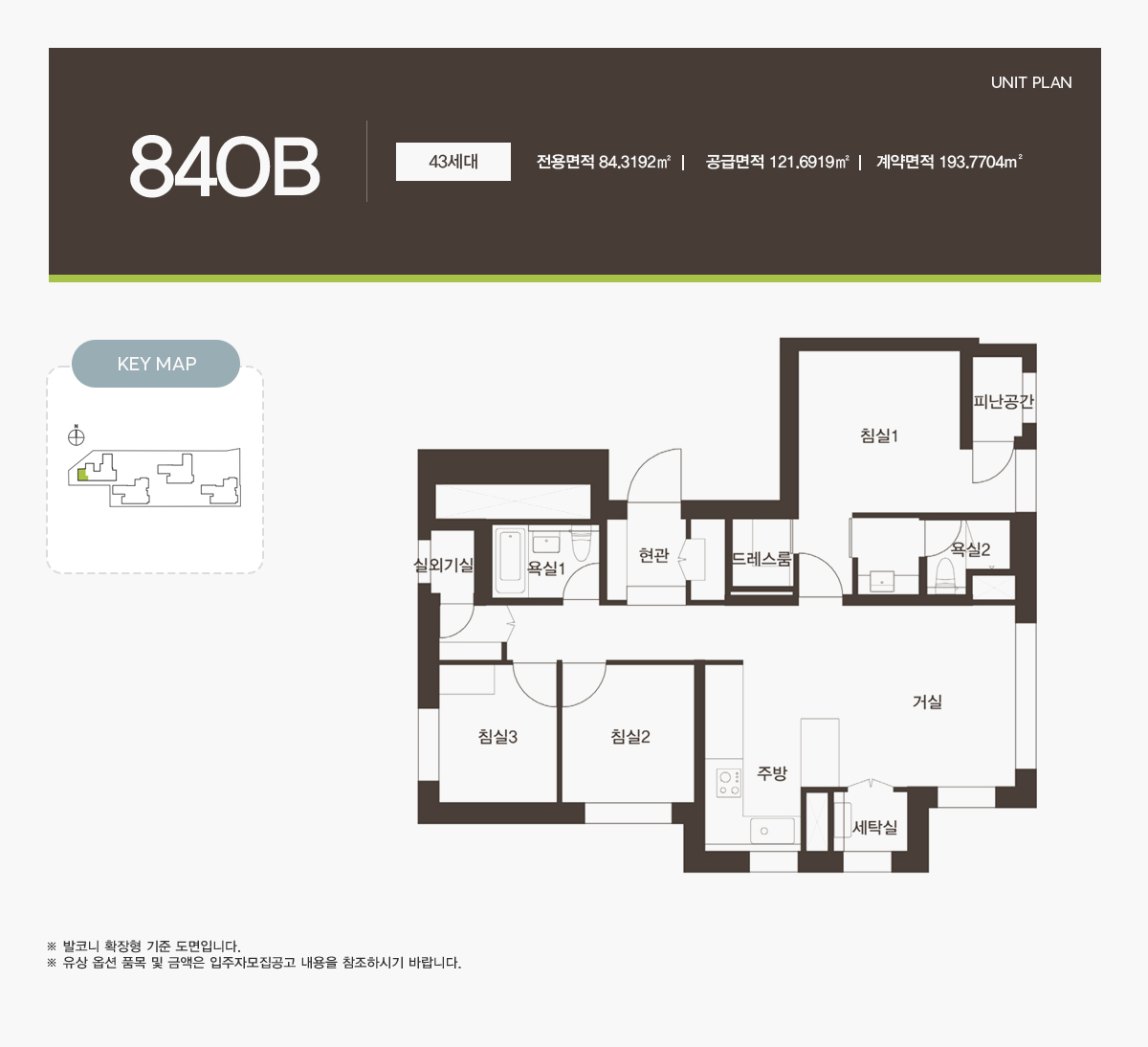 아파트는 84·105·185·192㎡까지 11개 타입, 오피스텔은 84㎡ A·B로 선호대역을 촘촘히 채웠습니다. 84A·B는 4Bay 판상형에 맞대면 거실·주방 동선으로 환기와 채광이 탁월하고, 세탁실 직결·팬트리·드레스룸으로 가사 효율을 높였습니다. 3면 발코니 확장형 84C는 안방 폭과 프라이버시가 돋보이며, 이면 타워형 84D·E는 시티뷰와 개방감이 장점입니다. 가족 구성이 다양한 도심 수요에 대응한다는 점에서 대구 신세계 빌리브 라디체의 상품성이 드러납니다.