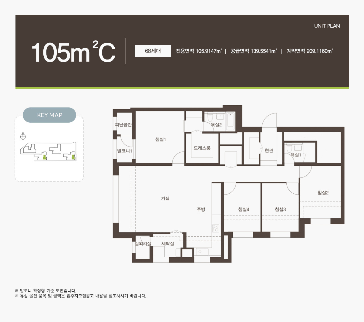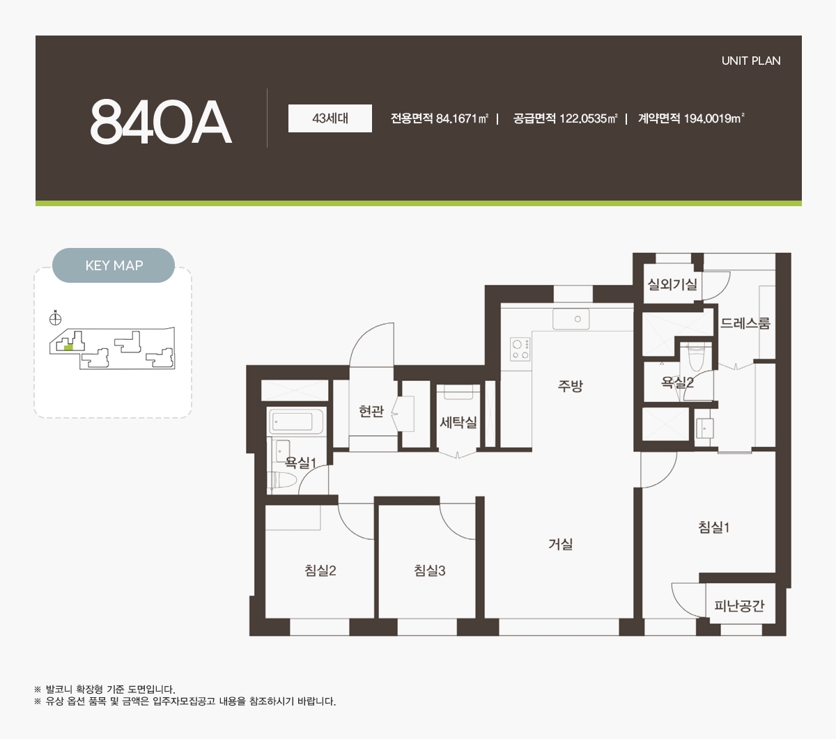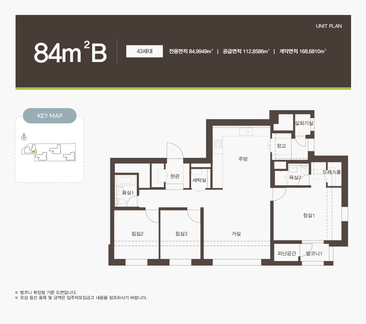 아파트는 84·105·185·192㎡까지 11개 타입, 오피스텔은 84㎡ A·B로 선호대역을 촘촘히 채웠습니다. 84A·B는 4Bay 판상형에 맞대면 거실·주방 동선으로 환기와 채광이 탁월하고, 세탁실 직결·팬트리·드레스룸으로 가사 효율을 높였습니다. 3면 발코니 확장형 84C는 안방 폭과 프라이버시가 돋보이며, 이면 타워형 84D·E는 시티뷰와 개방감이 장점입니다. 가족 구성이 다양한 도심 수요에 대응한다는 점에서 대구 신세계 빌리브 라디체의 상품성이 드러납니다.
