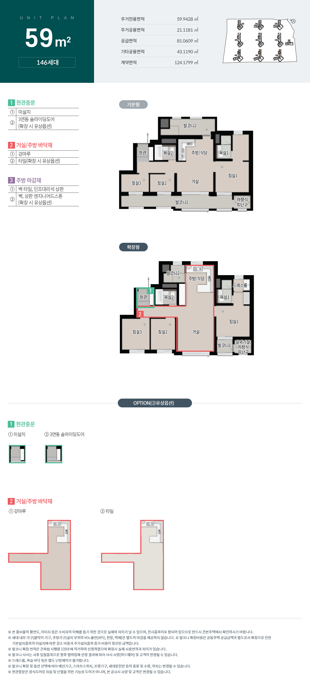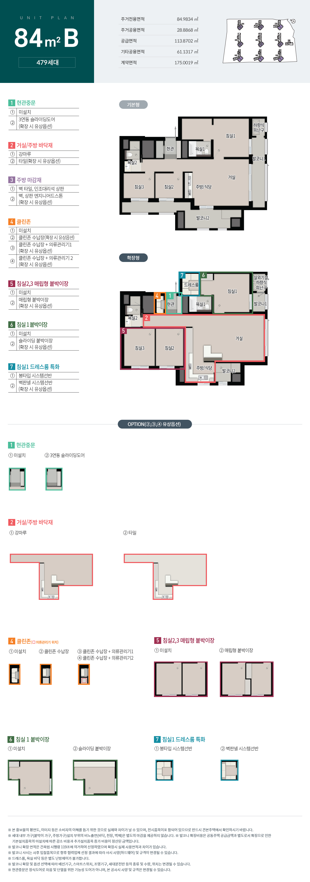 전용 59·84㎡가 주력이며 105㎡ 대형 라인업이 더해져 수요 스펙트럼을 넓혔습니다. 59A와 84A는 4베이 판상형으로 맞통풍과 채광이 우수하고, 알파룸과 대형 팬트리 등 유연한 수납 구성이 돋보입니다. 선택에 따라 알파룸을 와이드 다이닝이나 복도 팬트리로 바꾸는 등 라이프스타일에 맞춘 커스터마이징이 가능하다는 점도 매력입니다. 메인인 84B는 2베이 타워형·LDK 구조로 거실 개방감과 조망을 극대화한 타입으로, 가족 활동 공간의 밀도를 높이면서도 일조를 놓치지 않도록 계획했습니다. 실사용 빈도가 높은 주방·세탁·수납의 동선을 짧게 묶어 ‘하루의 피로’를 줄여주는 구성이 참 실용적입니다. 이런 평면 완성도는 광양 푸르지오 센터파크의 체감 가치를 키우는 핵심입니다.
