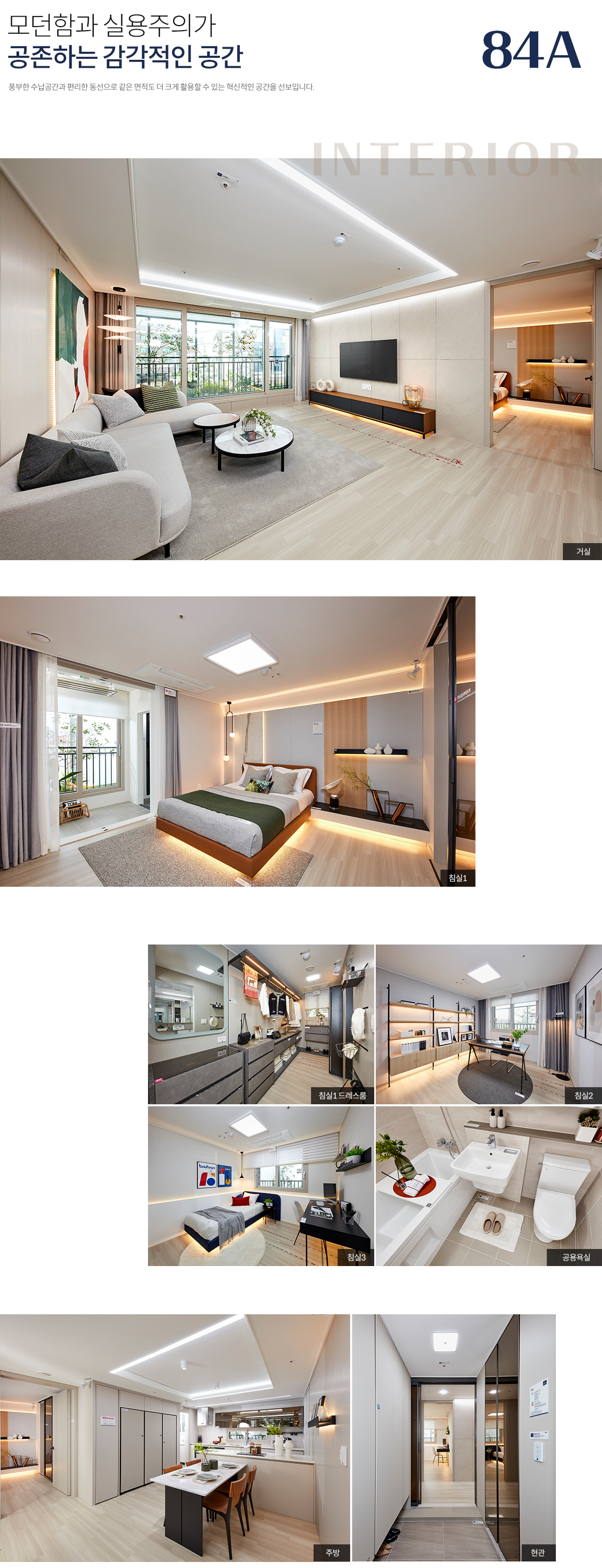 주력은 전용 84㎡ A·B형, 일부 107㎡가 배치돼 선택 폭을 넓혔습니다. 모두 4베이 판상형 맞통풍 구조로 실내 공기 순환이 좋고, 알파룸과 넓은 수납 존이 기본 동선과 자연스럽게 연결됩니다. 84㎡는 주방-다이닝-거실이 일직선으로 열리는 LDK 구성이라 가족 커뮤니케이션이 활발하고, 107㎡는 방 개수와 드레스 존 확장으로 라이프 스테이지 변화에 대응하기 좋았습니다. 실사용 면적 대비 체감 개방감이 큰 점이 평택 화양 동문 디 이스트의 강점이었습니다.