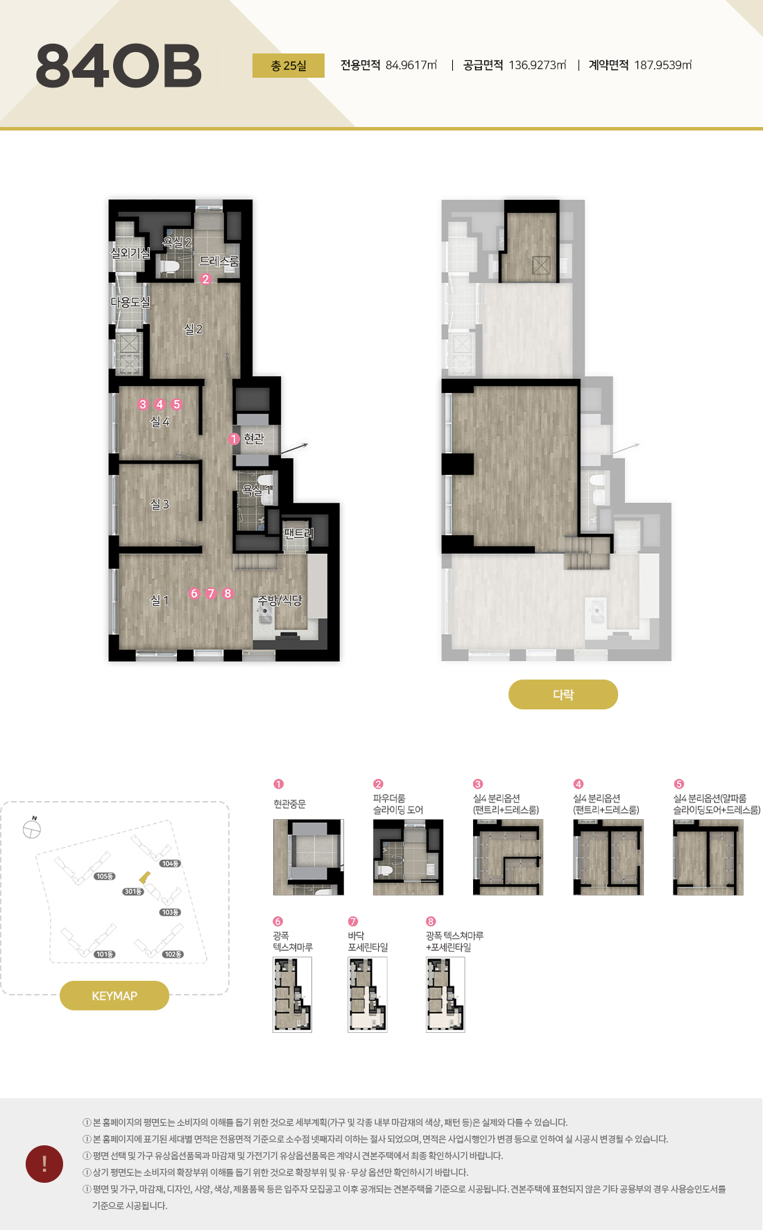 주력형 84A는 4베이 판상형과 맞통풍 동선이 장점입니다. 거실-주방 일직선 동선으로 생활 효율을 높이고, 알파룸·팬트리·현관창고·드레스룸을 곳곳에 배치해 수납 스트레스를 줄였습니다. 84B는 타워형 배치로 실·공간 분리가 확실해 사생활 보호에 유리합니다. 102㎡는 가족 수가 많은 집에 맞춘 대형 수납과 여유 있는 침실 폭이 강점입니다. 힐스테이트 서대구역 센트럴의 전 타입에 강화유리 난간, 와이드 창호를 적용해 개방감과 조망을 극대화한 점도 눈에 띕니다.