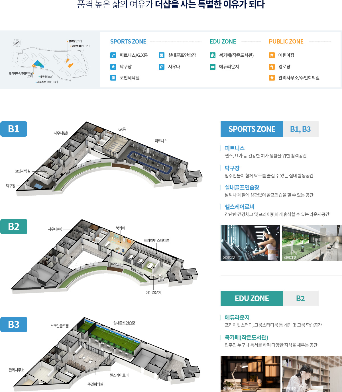 더샵 당리 센트리체는 포스코이앤씨의 스마트홈 솔루션을 적용해 난방 환기 조명 커튼까지 앱으로 제어가 가능하도록 준비했습니다. 세대 내 미세먼지 대응과 에너지 절감 장치, 주차 유도와 방문차량 예약 등 입출차 관제까지 일상 편의를 체계화한 점이 돋보입니다. 커뮤니티는 피트니스, GX룸, 실내골프연습장, 탁구장 등 액티브 시설과 북카페, 에듀라운지, 어린이집, 경로당 등 일상형 공간이 조화롭게 배치되었습니다. 고층 입지의 장점을 살린 라운지형 커뮤니티도 기대해볼 만합니다.