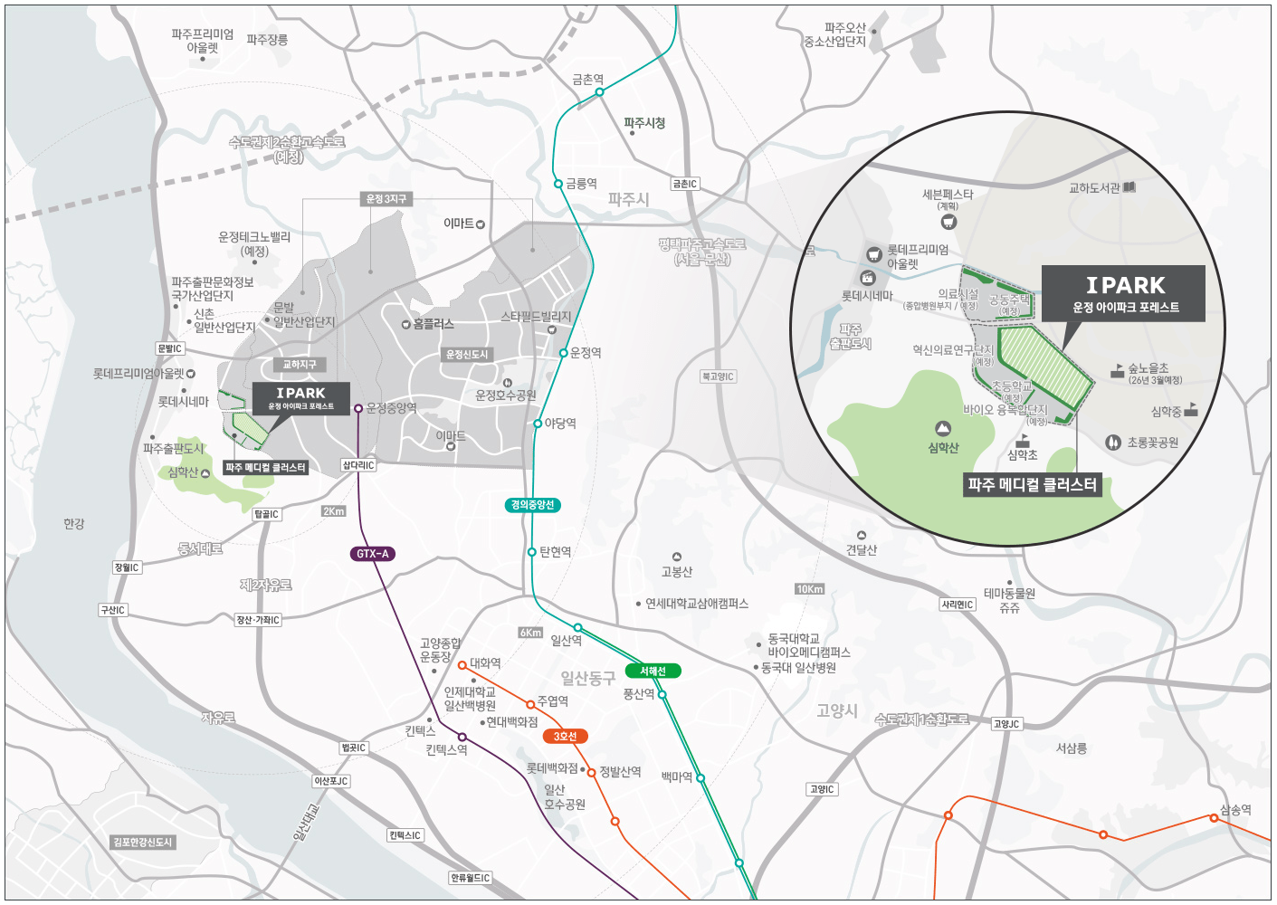 GTX-A의 본격 운영, 메디컬클러스터 핵심 시설 착공·개원 일정, 평택파주고속도로 등 광역도로 사업 진척, 운정 권역의 추가 공급과 흡수 속도, 금리 레벨이 핵심 변수입니다. 운정 아이파크 포레스트는 변수의 방향성이 우호적으로 모일수록 시간이 가치를 만들어낼 단지입니다.