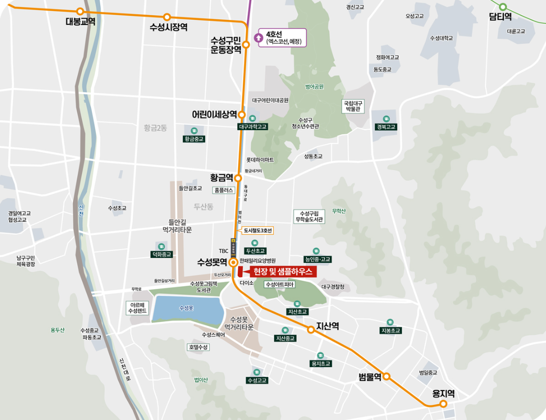 지하철 3호선 수성못역은 말 그대로 ‘문 앞’이고, 동대구로·신천대로·무학로를 통한 차량 이동도 간결합니다. 대중교통과 자가 이동이 균형을 이루니 출퇴근 루트 선택지가 풍부합니다. 더파크 수성못의 초역세권성은 장기 보유 시에도 변하지 않는 가치입니다.