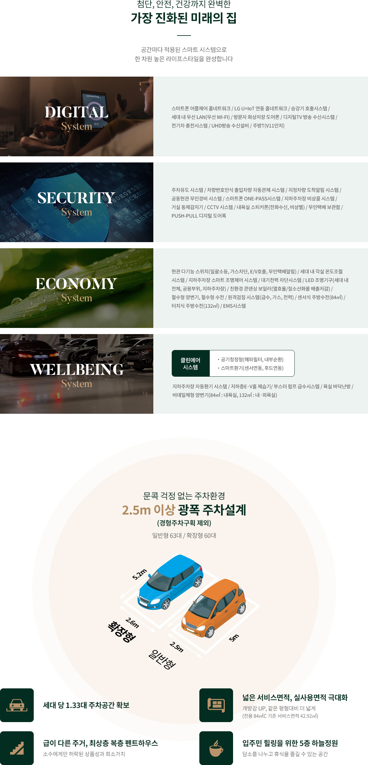 B1~2F는 단지 내 상가, 2~3층은 커뮤니티와 주민공동시설, 5층에는 하늘정원이 자리합니다. 피트니스, 스크린 골프, 라운지형 카페, 어린이 공간이 유기적으로 연결되어 집 안팎의 여가·휴식 동선을 짧게 만듭니다. 일부 세대에는 스마트 클린에어 시스템이 적용되어 실내 공기질 관리가 수월합니다. 더파크 수성못은 지상 보행 동선을 깔끔히 분리해 안전성을 높였습니다.
