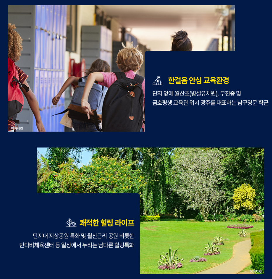 단지에서 도보 5분 내 월산초, 인접 무진중, 권역 내 다수의 고교까지 공교육 라인업이 균형 잡혔습니다. 금호평생교육관 이용성도 높고, 월산동 일대 학원가가 근거리에 형성돼 있어 사교육 접근성 역시 수월합니다. 학부모 실수요자에게 두산위브 트레지움 월산이 주는 체감 가치는 ‘통학 동선의 짧음’입니다.
