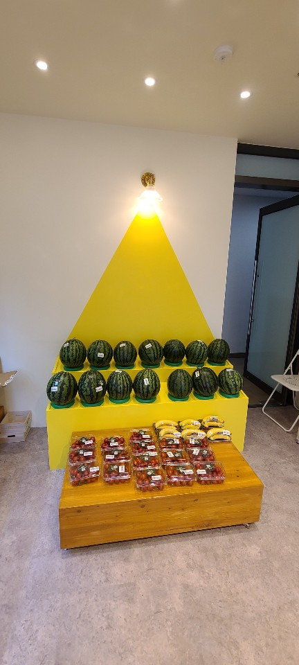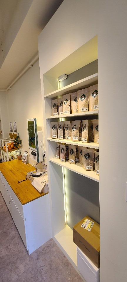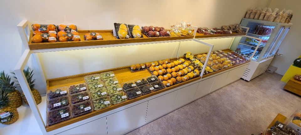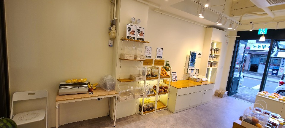 서울 목동 과일가게 인테리어 8평 시공현장 인테리어 홈코디 분석 내용 무인상점으로 키오스크 설치 벽체는 도장 과일진열대는 각파이프로 뼈대을 제작후 삼나무 집성목으로 바구니 제작 진열대는 LED조명 바닥은 데코타일시공 외부는 갈바시공 창문은 유압쇼바을 달아서 두번 접히게 제작 가마찌도어 제작 빠른시공과 저렴한 가격 리뷰 0 포토 리뷰만 보기 목록