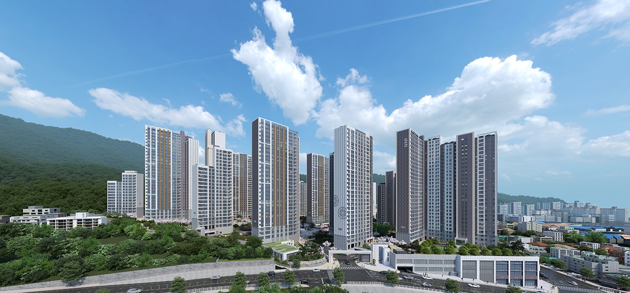 단지는 남향 위주의 배치와 충분한 동간 거리를 전제로 설계되었습니다. 거주동과 근린생활시설 사이에는 테마형 공원을 계획해 산책과 휴식, 어린이 야외활동을 일상으로 만들 수 있도록 했습니다. 차량과 보행자의 동선을 철저히 분리한 마스터플랜은 아이가 있는 가정에서 체감하는 안전감을 높여줍니다.