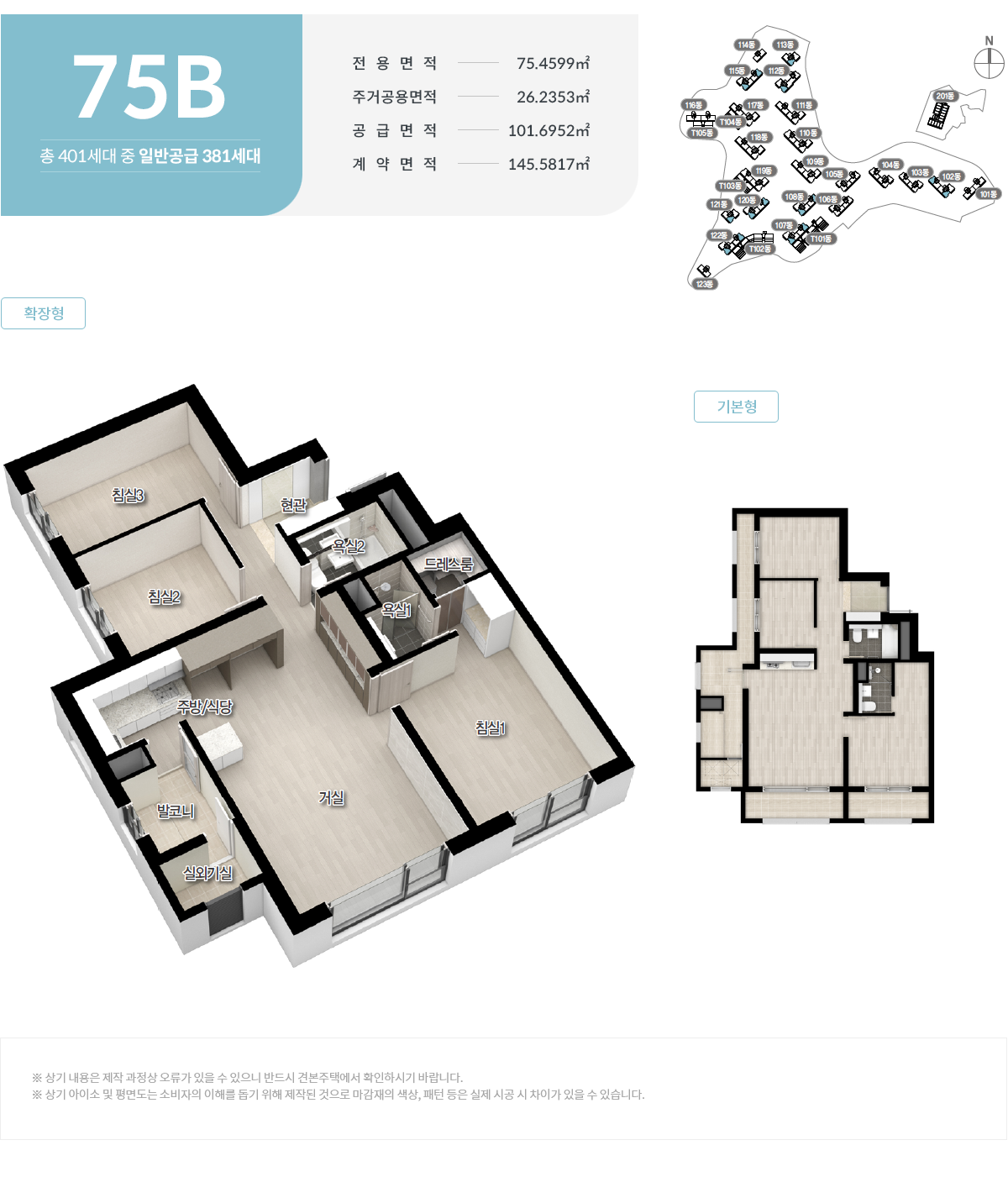 수요가 두터운 전용 59와 75, 84 중심의 라인업은 환금성과 실거주성을 동시에 겨냥합니다. 75타입은 여러 유닛으로 세분화해 라이프스타일별 선택 폭을 넓혔고, 3베이 판상형과 맞통풍 구조로 환기 효율을 끌어올렸습니다. 넓은 주방 동선과 발코니 연계, 드레스룸과 팬트리 중심의 수납 특화는 체감 면적을 키워줍니다. 시스템 이중창과 유리 난간 창호는 조망과 기밀성을 함께 고려한 사양으로, 두산위브더제니스 오션시티의 상품성을 상징적으로 보여줍니다.